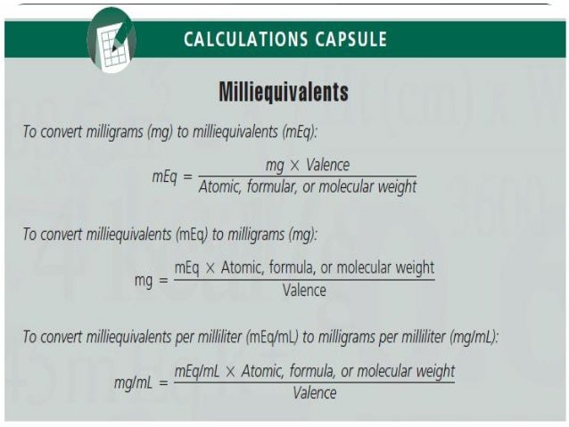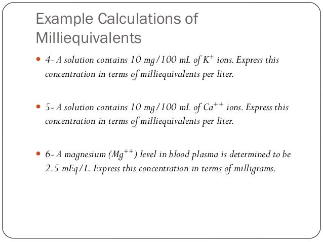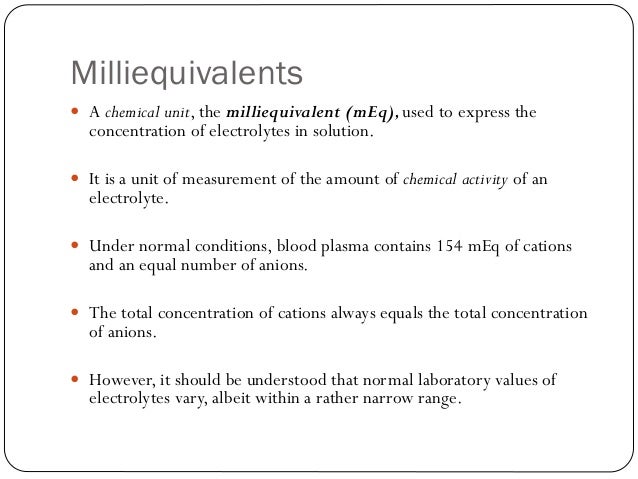 Meq L Milliequivalent Per Liter